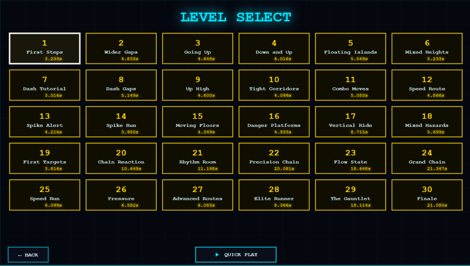 - Personal Bests: Every level tracks your fastest completion time